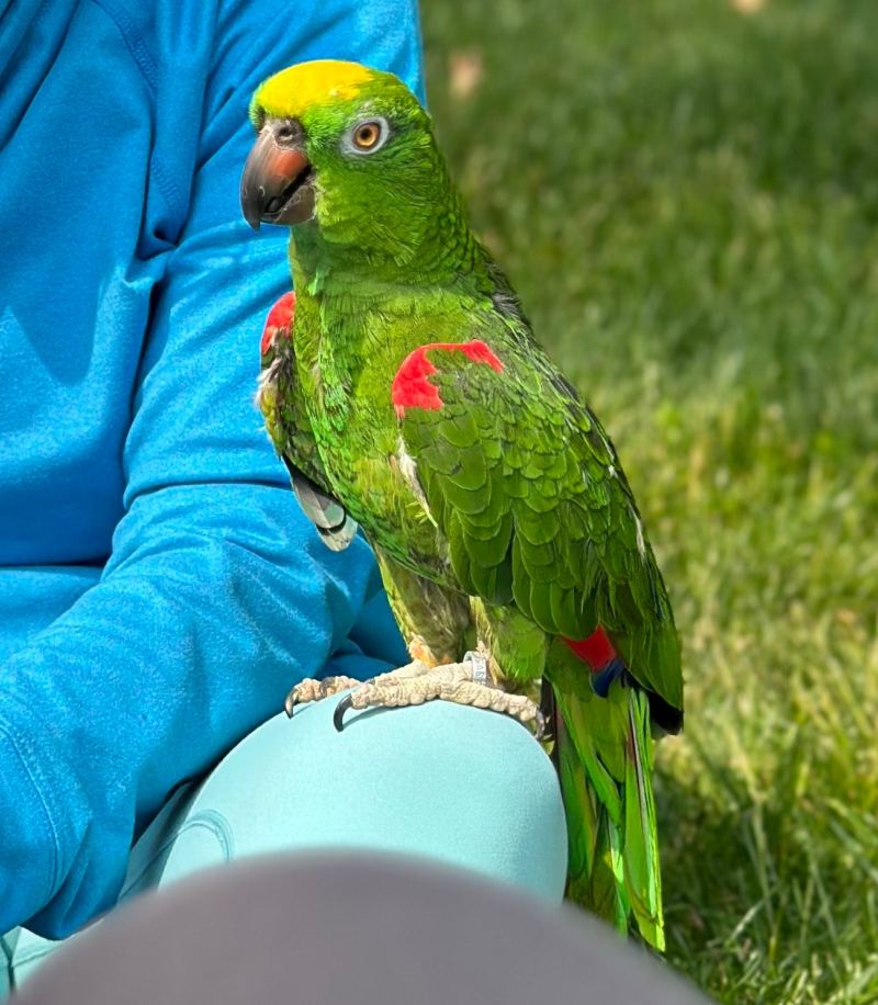 Edwardo, an Amazon Parrot was a beloved pet He lived to 30ish in age and was a real character. He loved to dance and talk and was especially fond of Beyonce and Adele, but really anything with a beat was exciting for him.