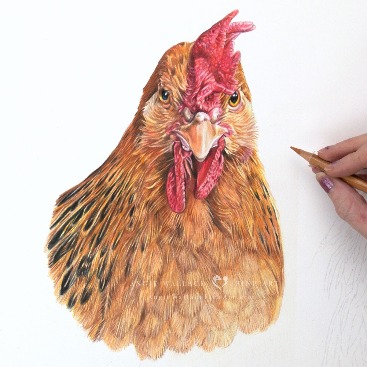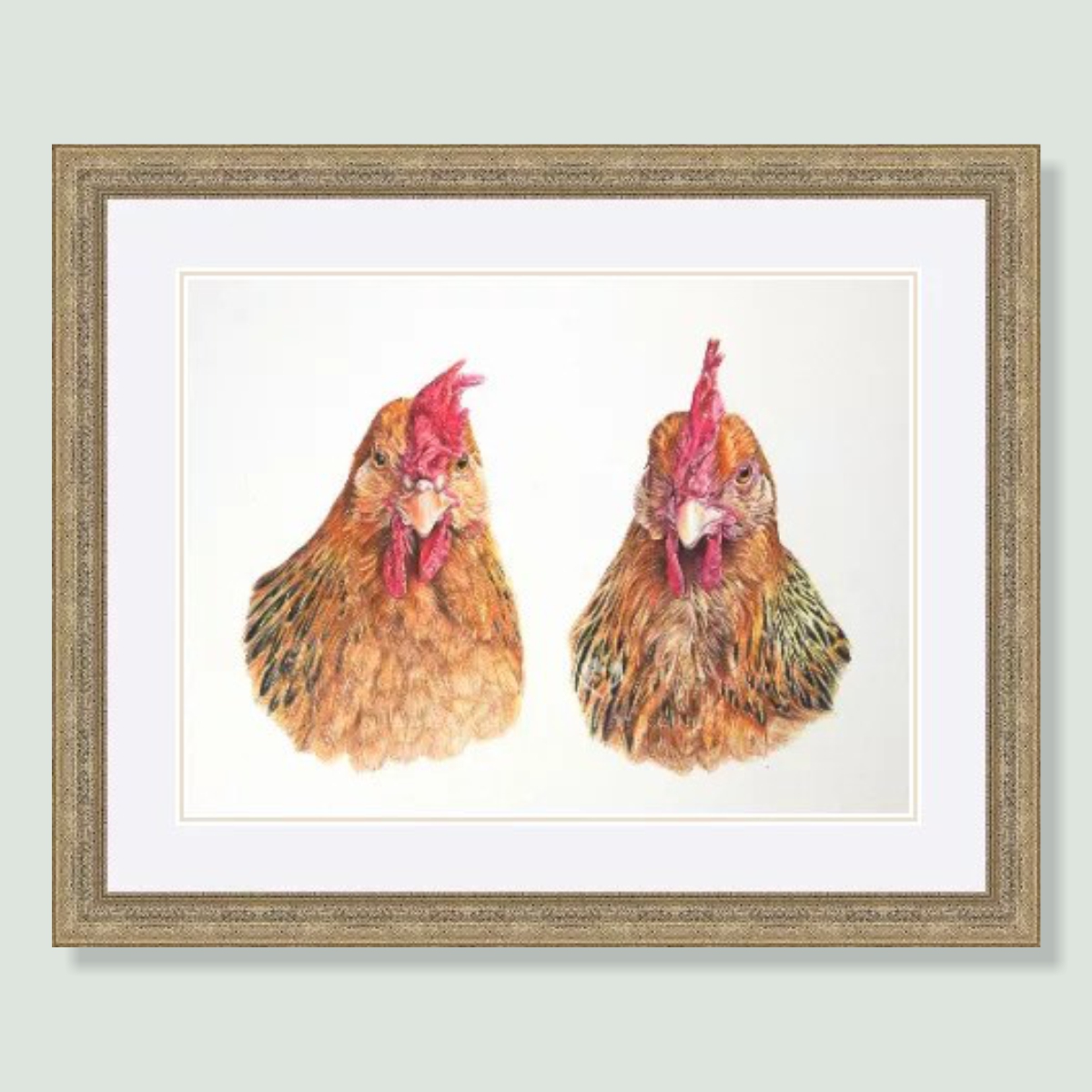 These are my girls and I cannot emphasise enough that Angie has absolutely captured both of them so beautifully. I feel like I am looking into their eyes just waiting for them to move. I am absolutely delighted and so very glad that Angie has drawn my hennies as her first. I have them captured for life so much better than photographs. Thank you Angie you are a truly talented lady xxx