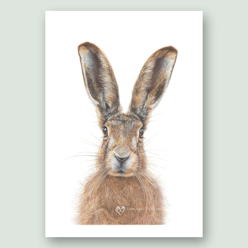 This charming Brown Hare portrait is available as a limited edition full size A3 – 40x30cm size giclée print, supplied unframed.